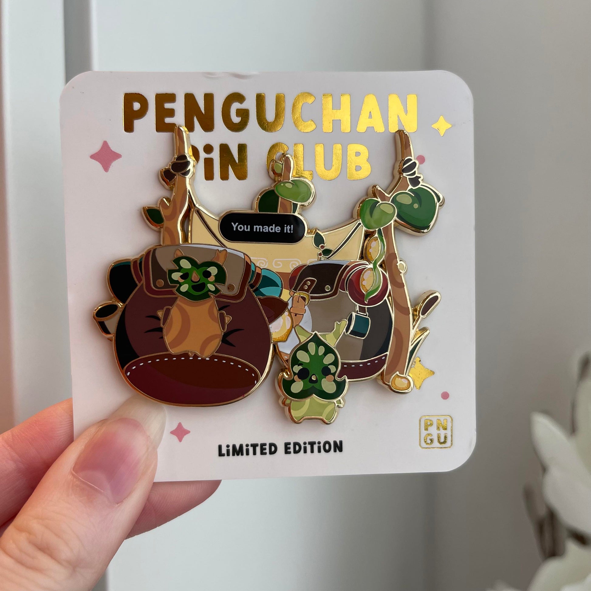• Embossed PenguChan Pin Club back stamp
