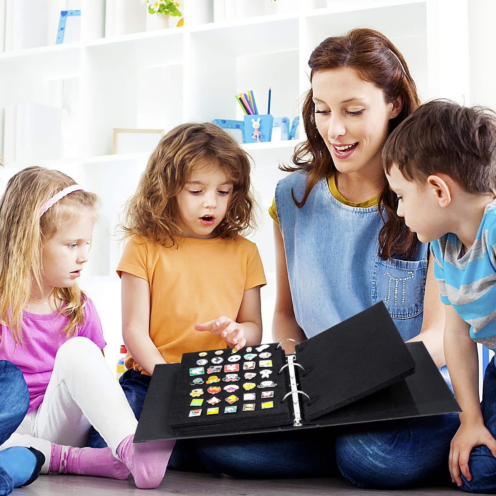 It has a large capacity since the thick felt-board "pages" can be filled on both sides; there are thin felt separator "pages" that can be placed between the boards to protect your pins from scratching each other.
