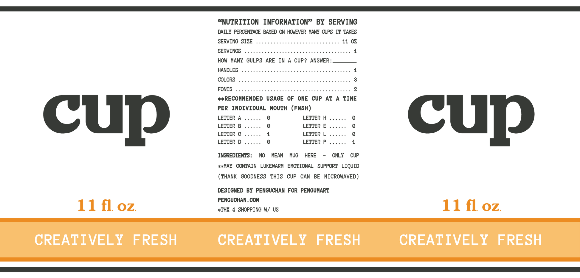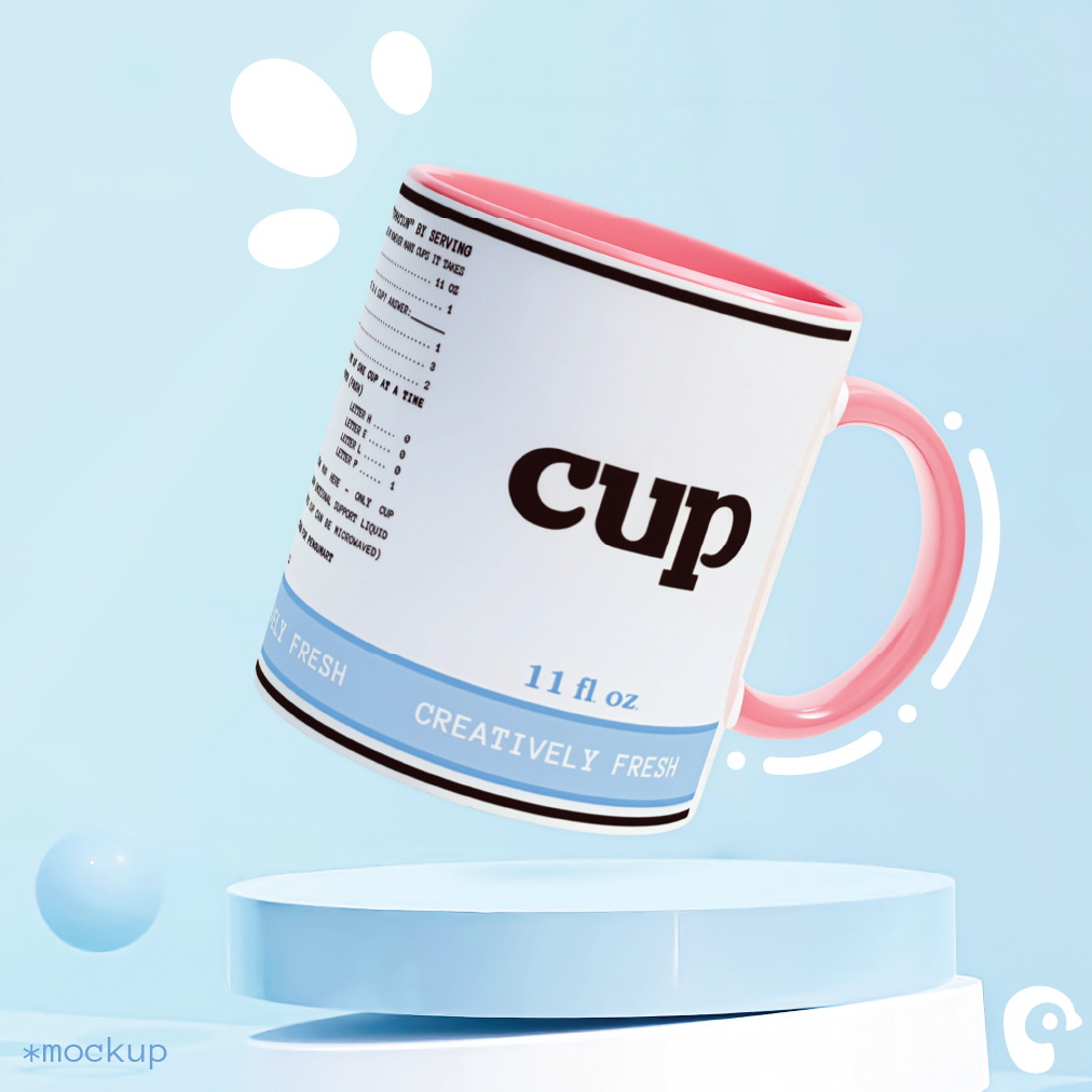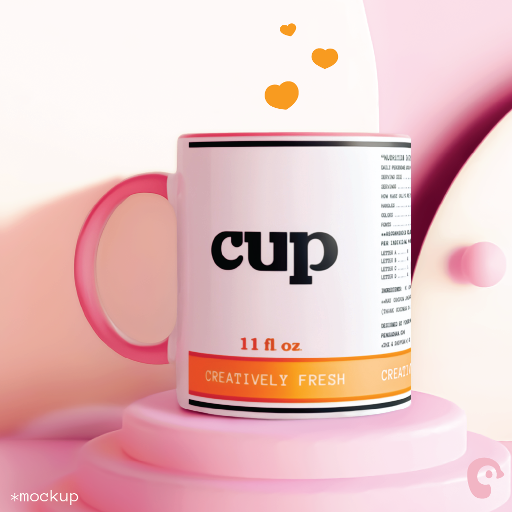 The mug is glossy white with a pink colored rim, inside, and handle. Inspired by the 1980 Ralph's collection of "generic goods" seen in grocery stores around America.