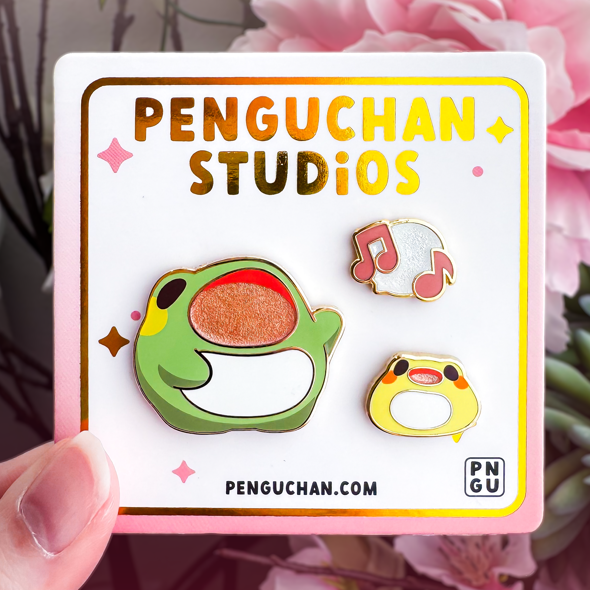 This is a set of 3 pins featuring our favorite singing frog duo, Tad & Croak!
